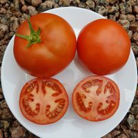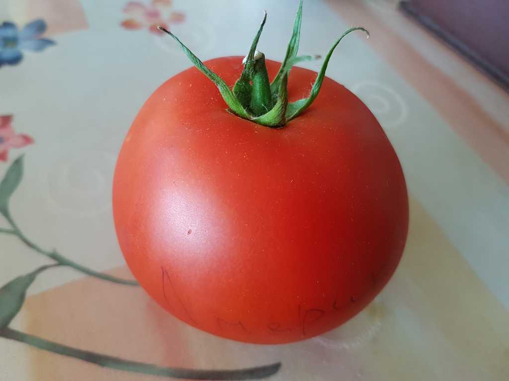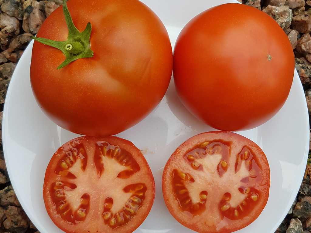 Jätte produktiv sort med fina runda saftiga frukter, planta är upp till 2,5 m hög.