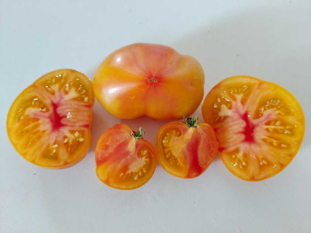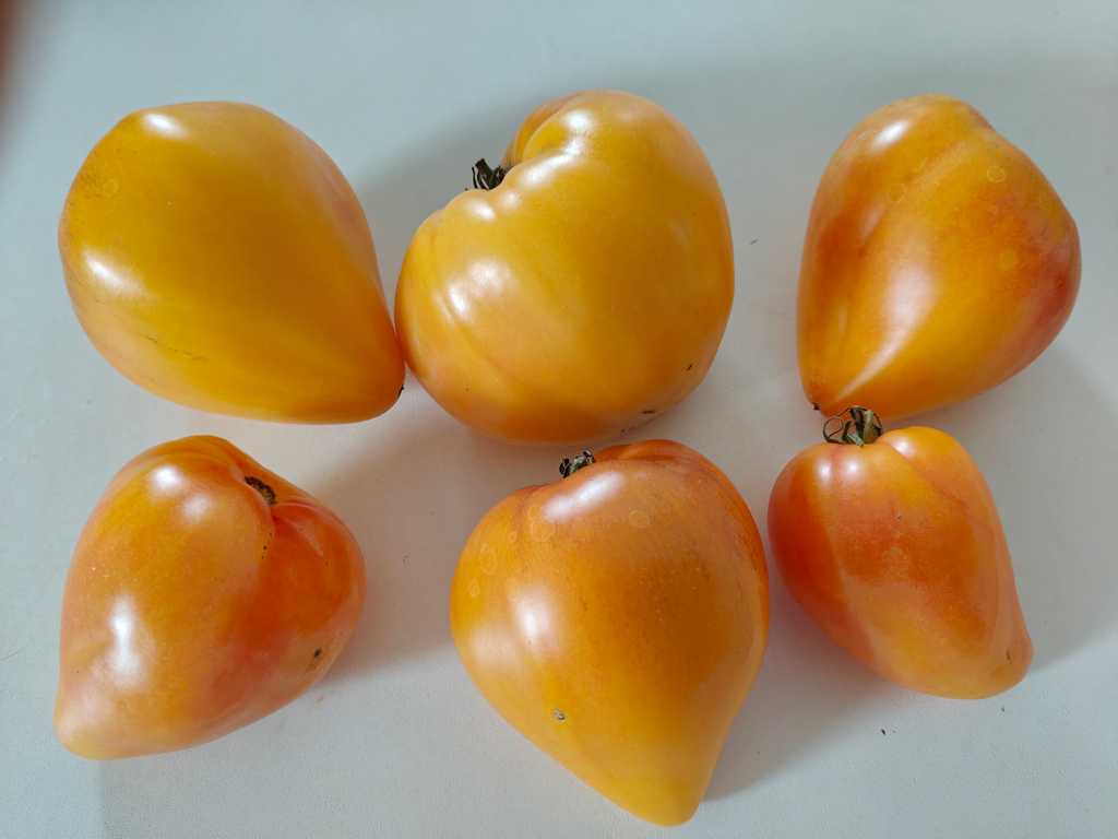 En ung sort från Sofia Saakova som är korsning mellan Blå Ananas och Serdze Ashkhabada. Fruktform kan bero av villkor, hjärtformad, kan vara bredare eller spetsigare. Ibland kan visas blå färg på axlar, speciellt på slutet av säsongen. Smaken är god och fruktig, väger 200-500 g.