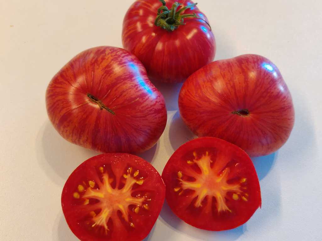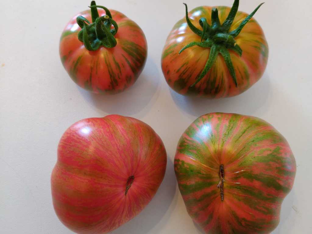 150-400g vackra frukter, med välbalanserad smak. Korsning mellan Big Rainbow och Green Zebra.