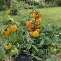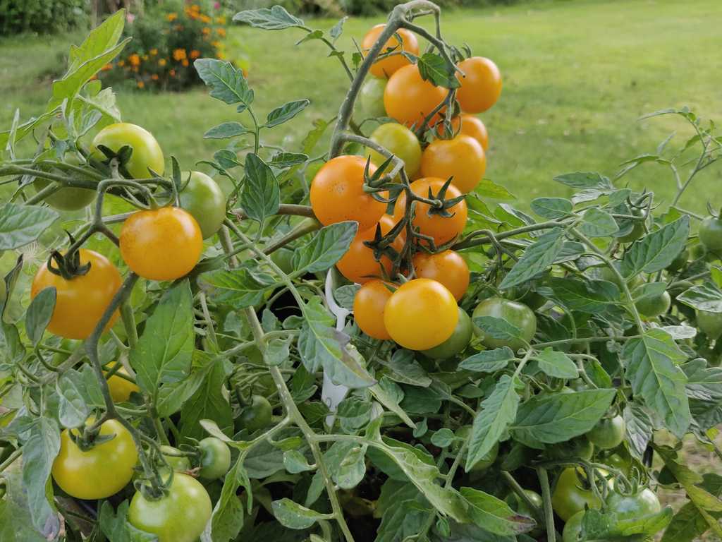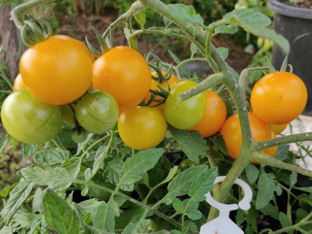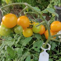 30-40 cm buske med goda gula körsbärstomater. Det kommer nya och nya frukter och mognar hela säsongen.