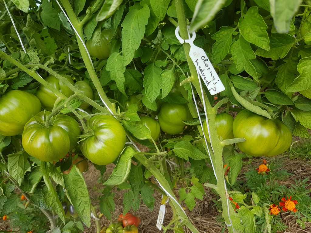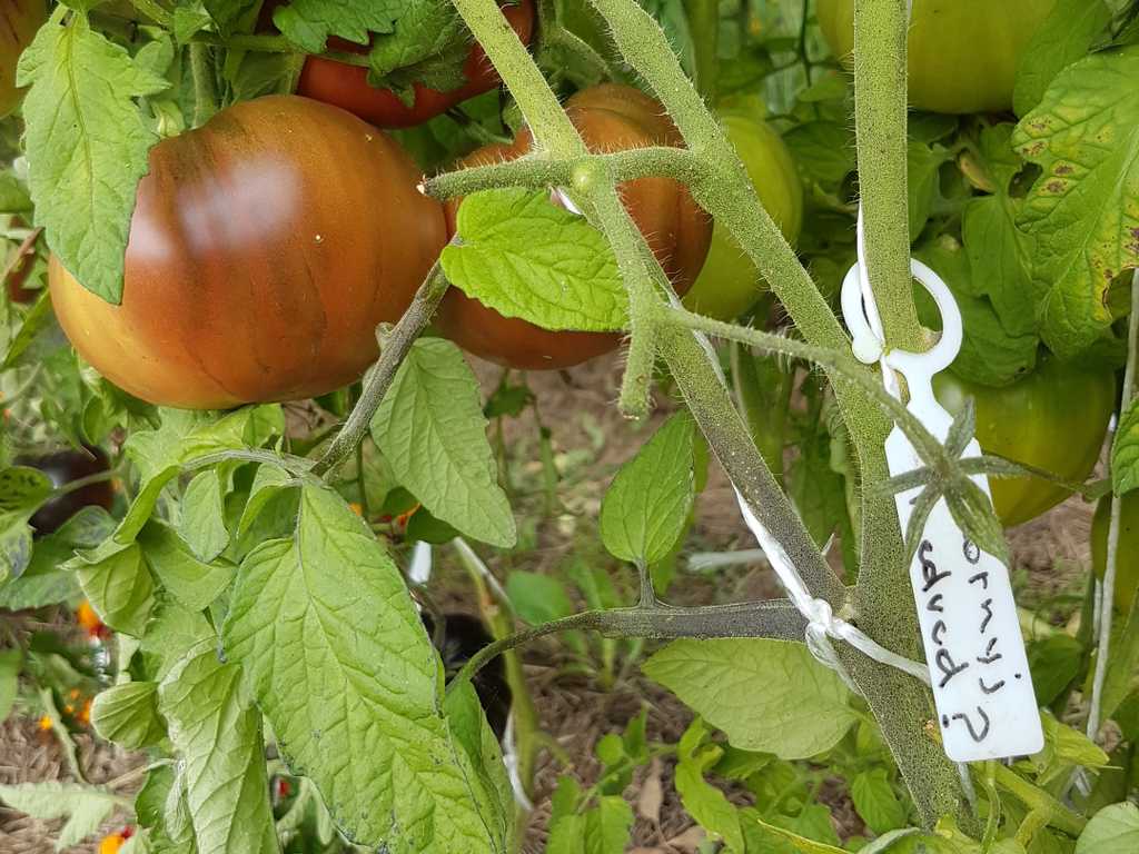Kraftig växtsätt, extra stora mörka tomater med syr-söt mycket god smak.