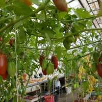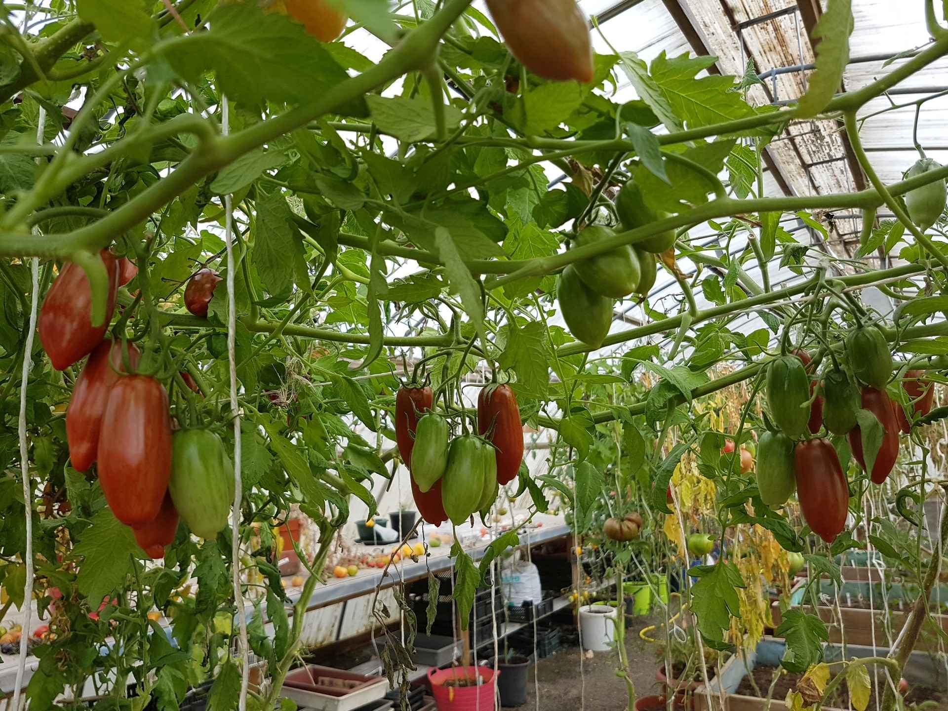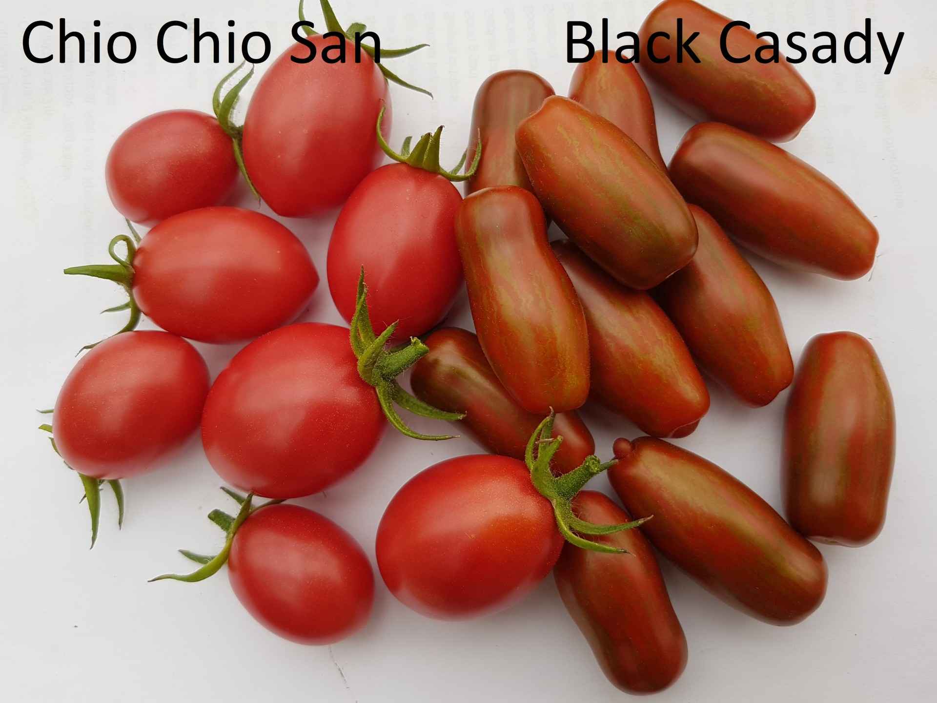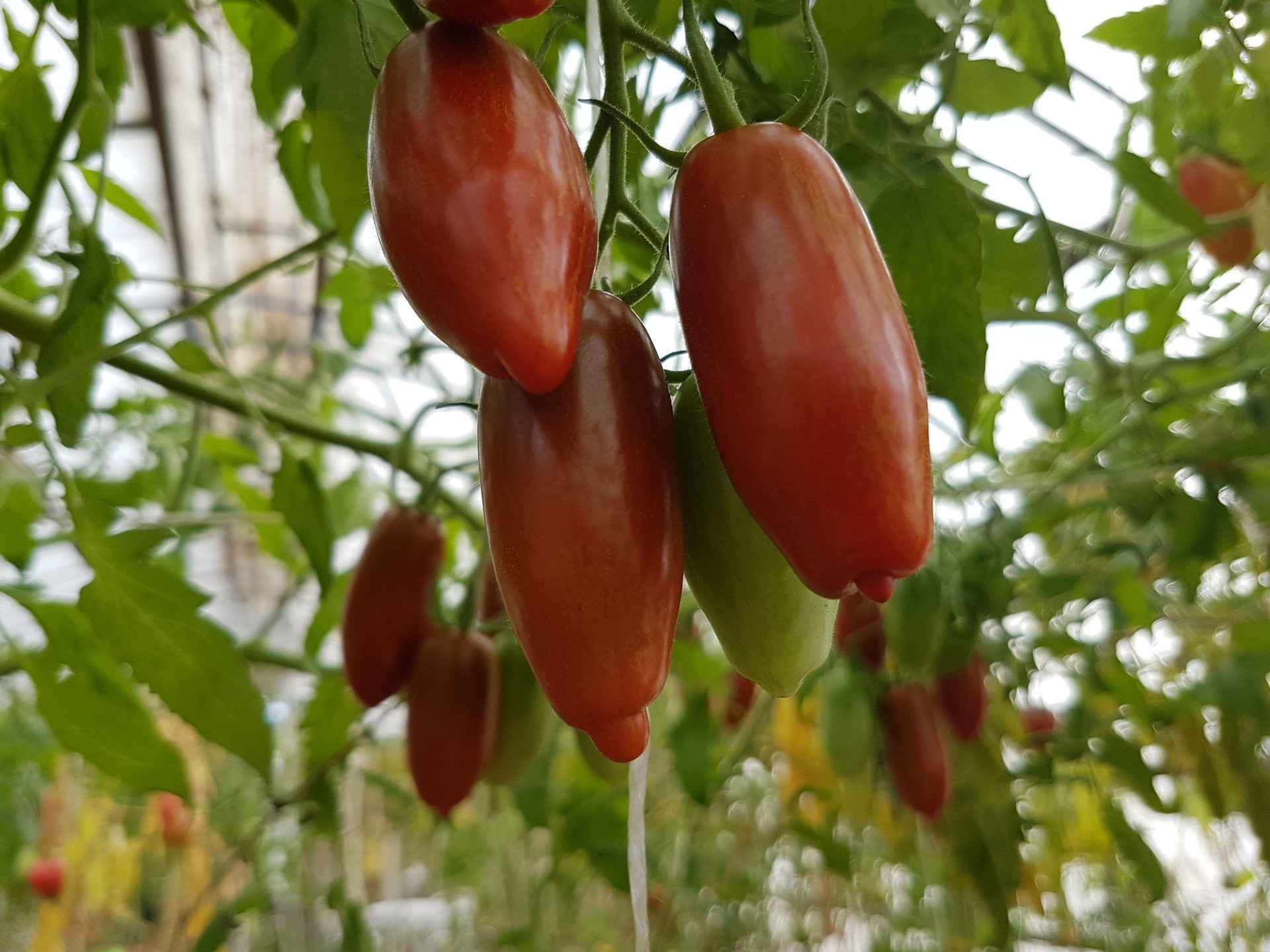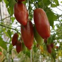 2m hög, 40-80g plommonformade tomater, producerar mycket och länge