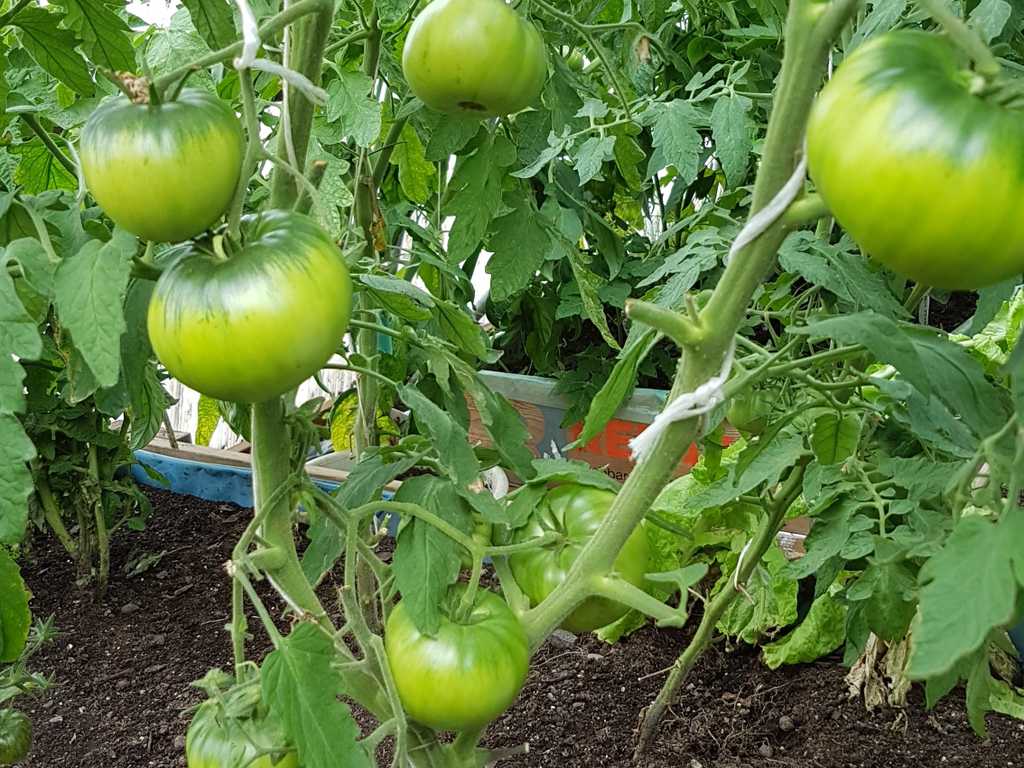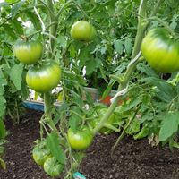 1,2 m hög, med mycket goda mörka frukter med gröna axlar.