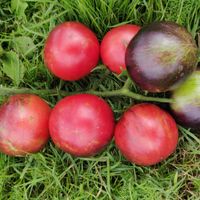Tomaterna är otroligt vackra i färgkombinationerna som dessutom ändras under mogningsprocessen! Fruktköttet är rött, sött och saftigt. Perfekt till sallad, snacks men även till marmelad och sylt.