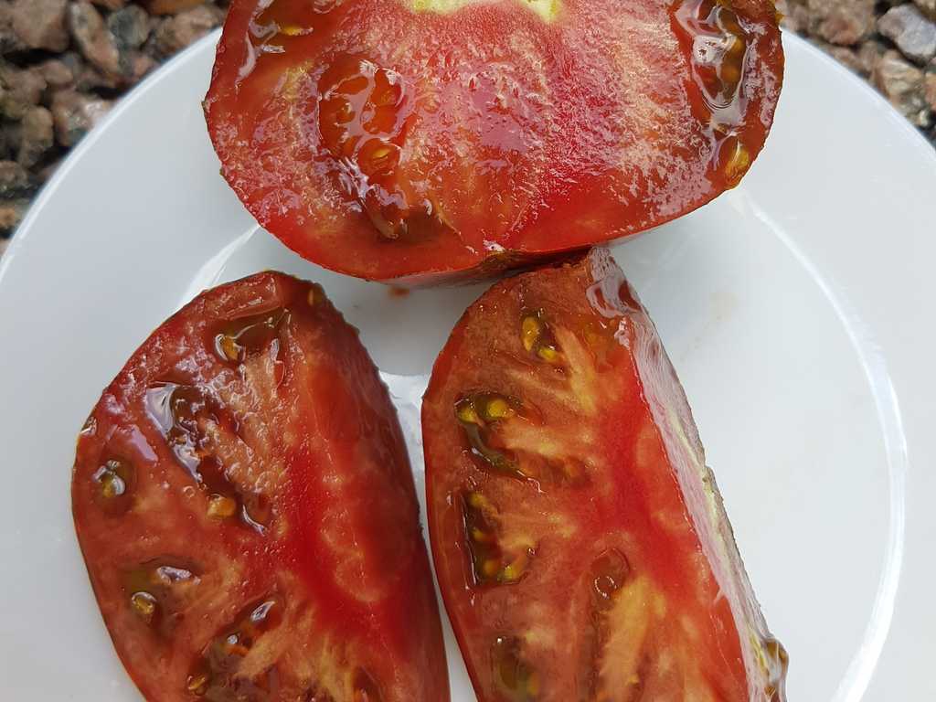 Kraftig planta upp till 2m hög med mörka strimmiga frukter som har god och söt smak, kan upprepa, den är god och söt!