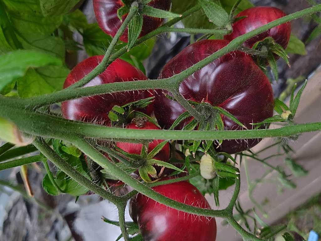2 m hög sort med vackra blå/rosa tomater. Frukter är söta, köttiga med en stark arom. Sorten är resistent mot sjukdomar.