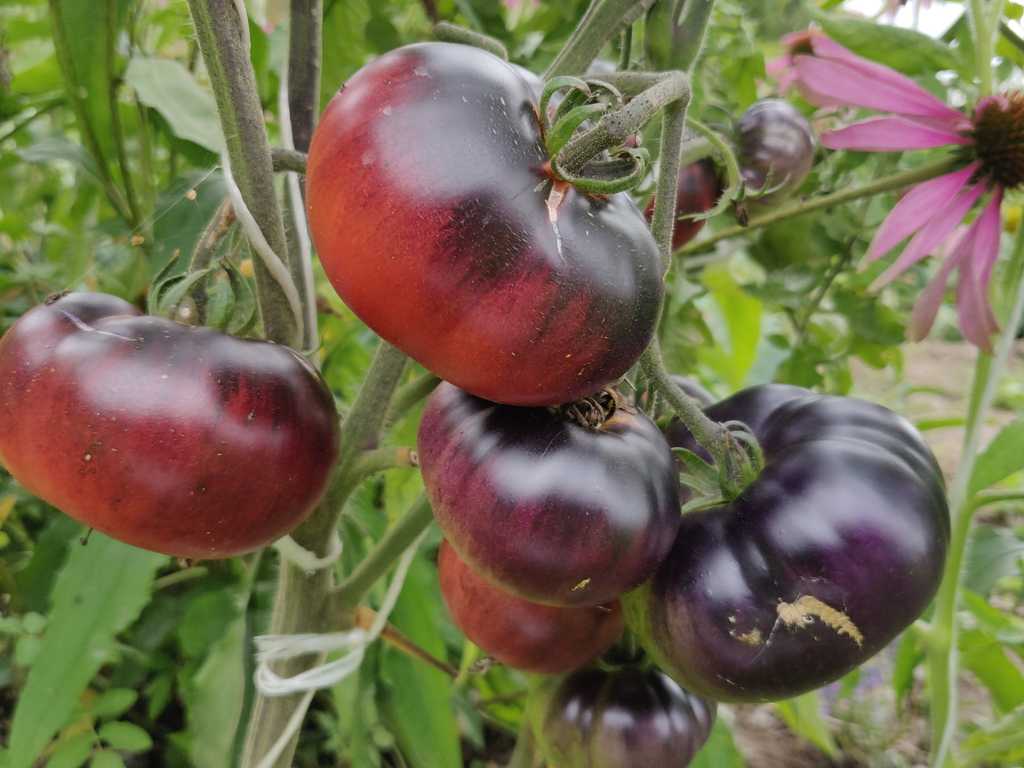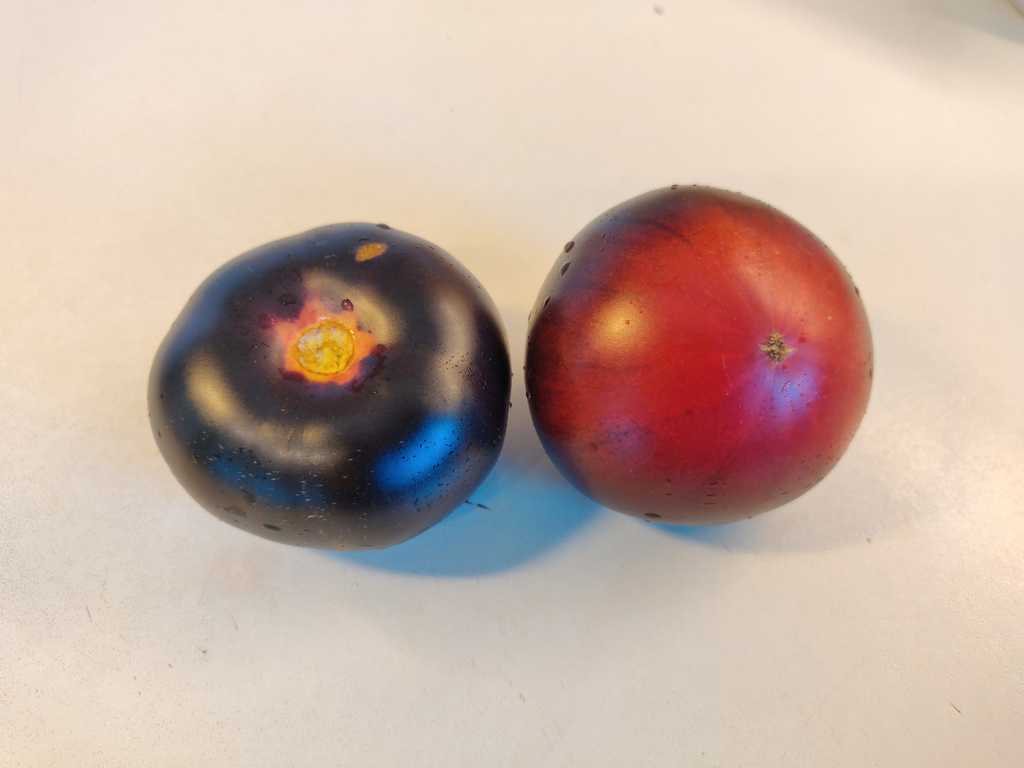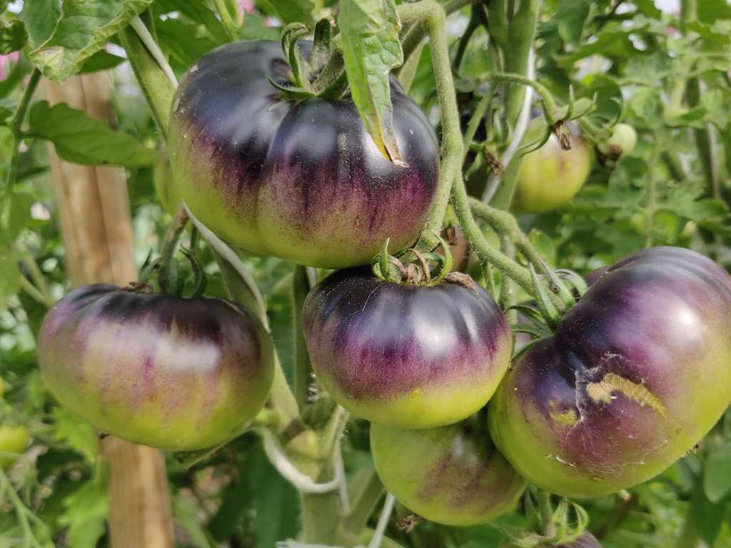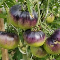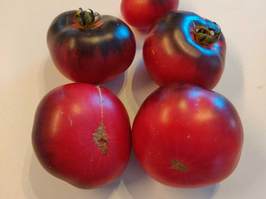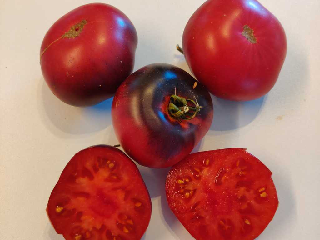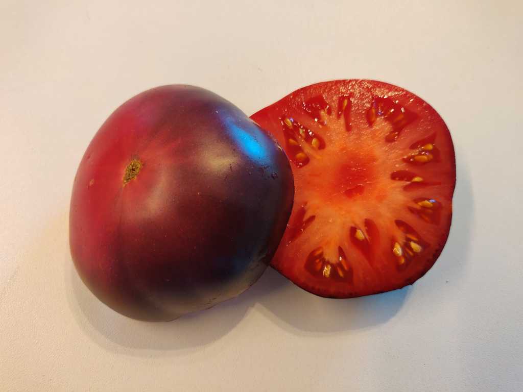 Planta är 130-150cm hög. Vackra medelstora (90-130g) tomater i röd-blå färg. Smaken på tomatfrukten är sötaktig med en lätt syrlighet. Den rika aromen och det saftiga fruktköttet gör denna sort idealisk för färsk konsumtion. Den är bra för att göra sallader, aptitretare och desserter. Sorten är resistent mot huvud sjukdomar.