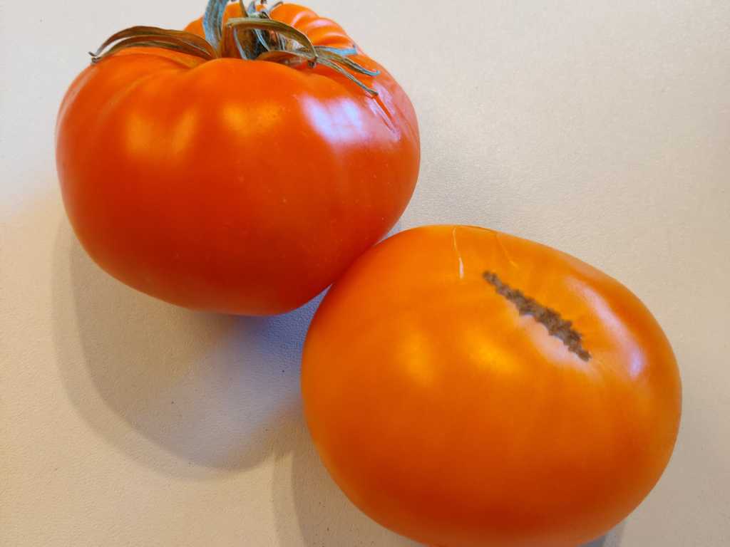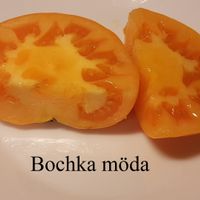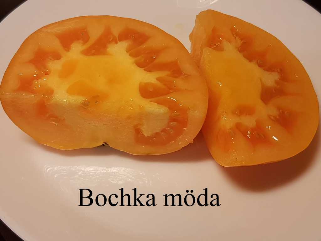 (Honungs tunna) hög växande sort med stora platt/runda frukter med tätt kött. Tomater har mycket bra smak.