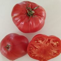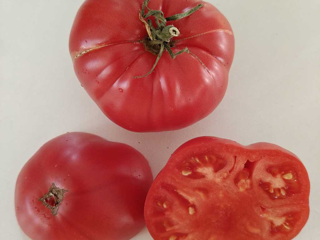 1,8m hög planta, producerar stora, räfflade, hallonröda tomater. Fruktkött är tätt, saftig, mör, söt, få frön.