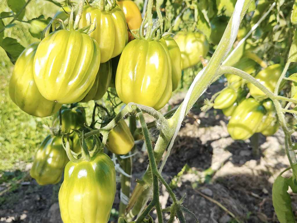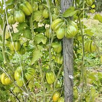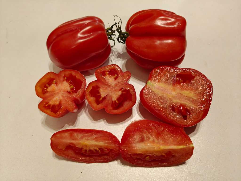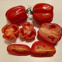 Tidig och mycket produktiv sort. Frukterna är röda med hallonfärg, ribbade, veckade "päron" som väger upp till 150 g, samlade i stora klasar. Tomaterna är smakrika och köttiga.