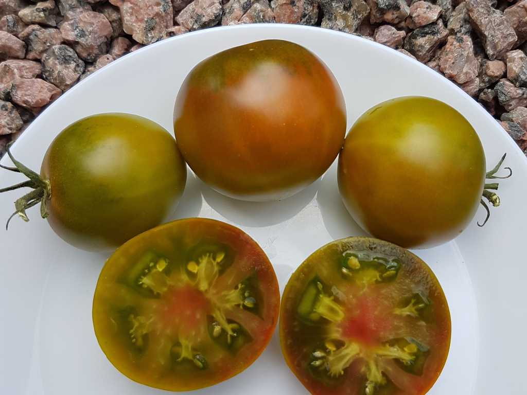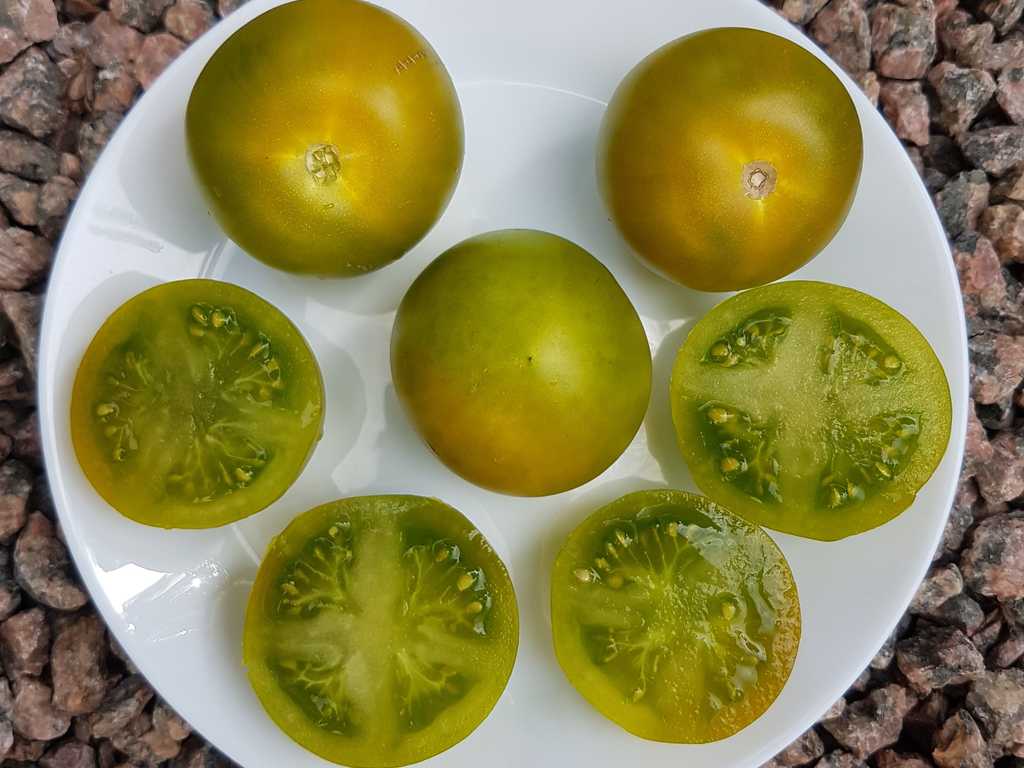 Grön version av "Chadds Ford". Frukt från 120 till 150 gram, grön hud täckt med gult rodnad mot full mognad. Köttet är väldigt saftigt och krispigt. Stor uppfriskande smak, typisk för "grön tomat". Mycket kraftig växt. Utmärkt produktivitet i mitten av säsongen till de första frostarna.