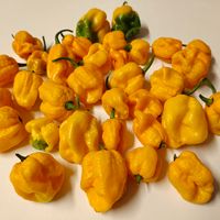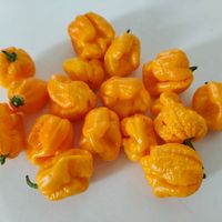 En gul variant av den extremt heta Carolina Reaper-chilin, med en Scoville-grad på 1 200 000-2 200 000 SHU. Smaken är fruktig, söt och citrusliknande, med toner av choklad och körsbär och är mycket het. 70-100cm buske. Hantera den försiktigt och var medveten om att den inte är lämplig för nybörjare.