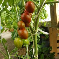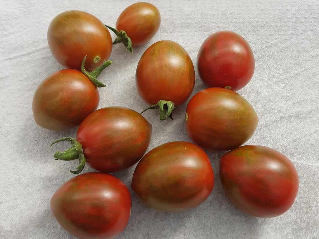 180cm 10-15g tidig sort. Lika frestande som dess välförtjänta namn är chokladströssel den perfekta balansen mellan smak, utseende, utbyte och sjukdomsresistens. Dessa bitstora tomater har slående, skogsgröna ränder över djupt kopparrött och en härligt söt smak. Obestämda växter producerar rikliga, tjocka trådar av den läckra, sprickbeständiga frukten.