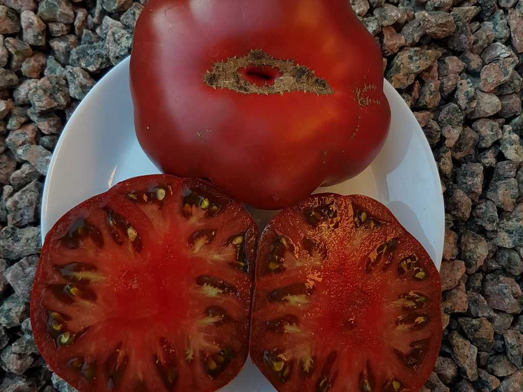 Medeltidig, mycket produktiv sort, upp till 1,6 m hög. Frukten är extra stor, plattrund, rödbrun, som en mogen granatäpple med en lila nyans, saftig, mycket god i smaken, söt med en liten surhet.