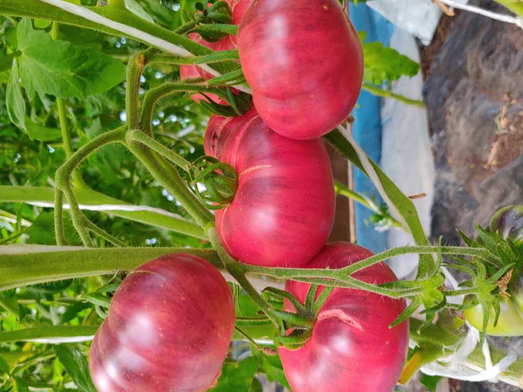 Vacker rosa tomat med blåa axlar har köttig och saftig konsistens och innehåller mycket socker och syra. Detta gör den till en av de bästa varianterna för matlagning och för att göra rika såser eller soppor. Den kan också användas färsk, skivad och läggas till smörgåsar eller sallader. Mycket rikgivande sort. 200-350 gr per frukt.