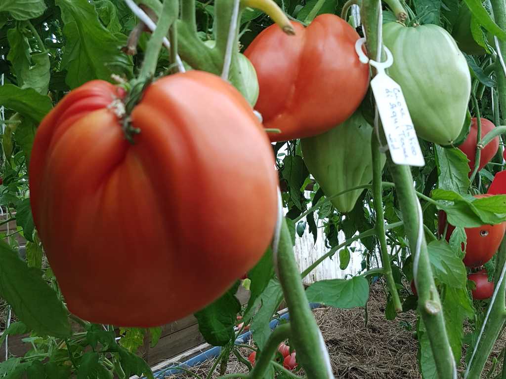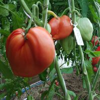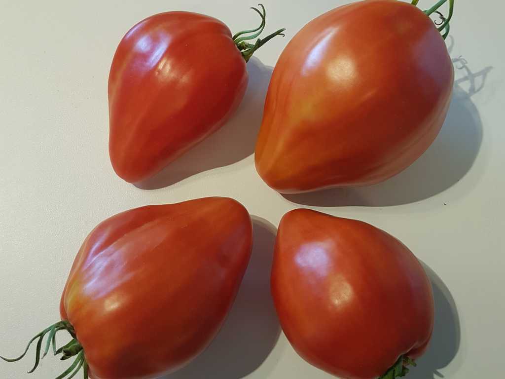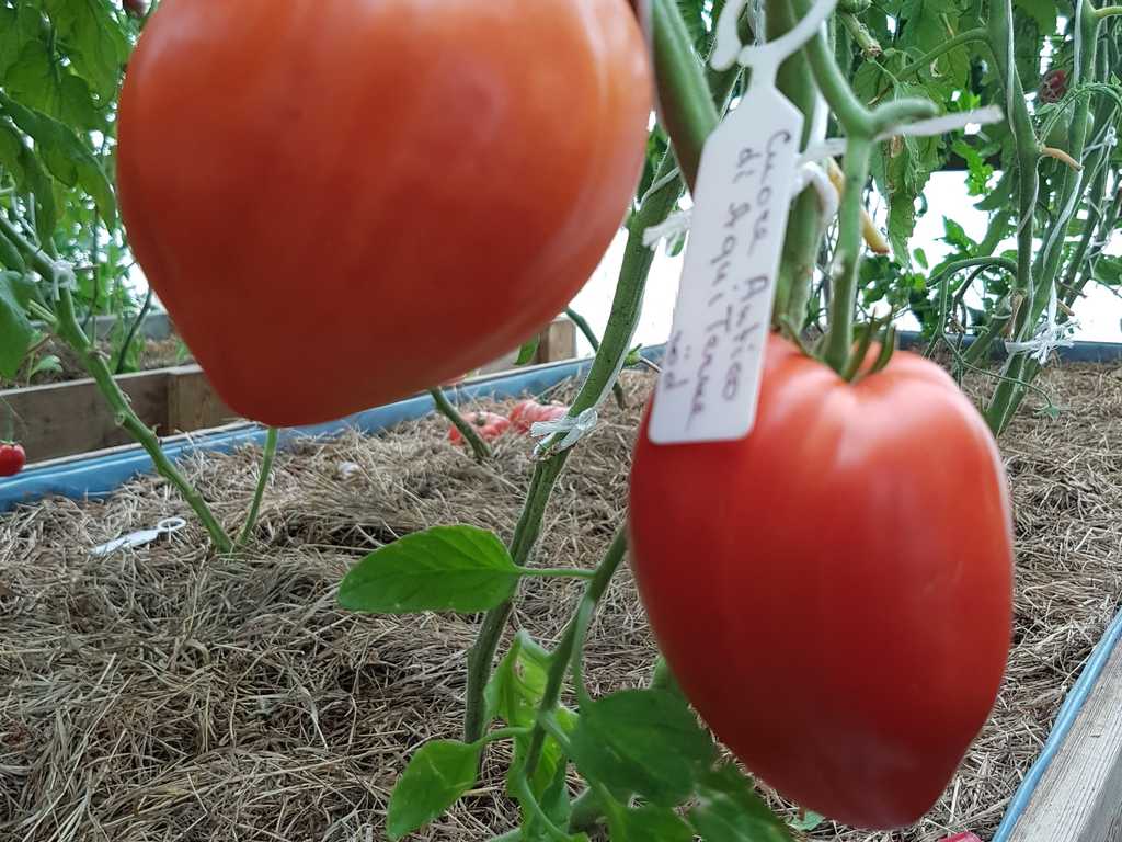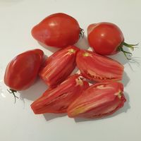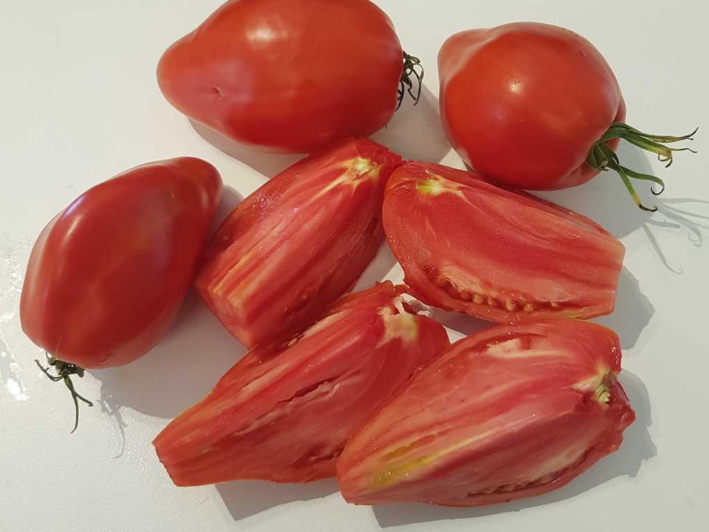 Detta är förmodligen den största pastatomaten. Mor till alla såstomater. Mycket tätt kött, den är väldigt sött. Stor röd frukt på 300 till 800 gram, med en variabel form, vanligtvis hjärtformad och ribbad på toppen. Söt och rik smak.