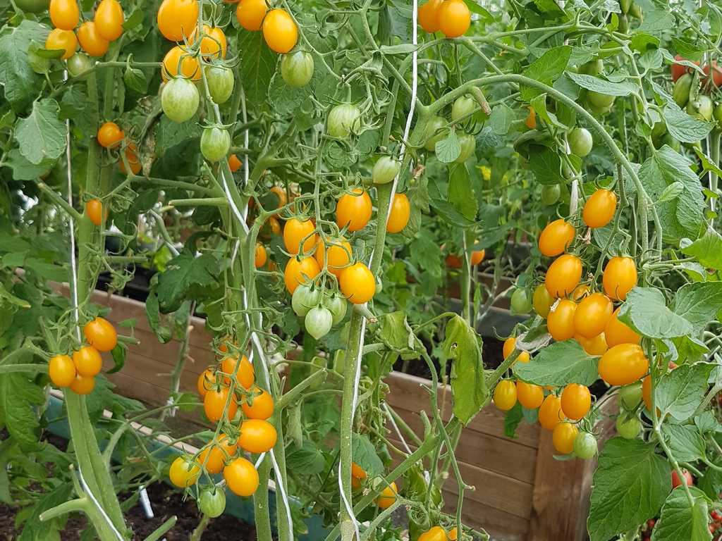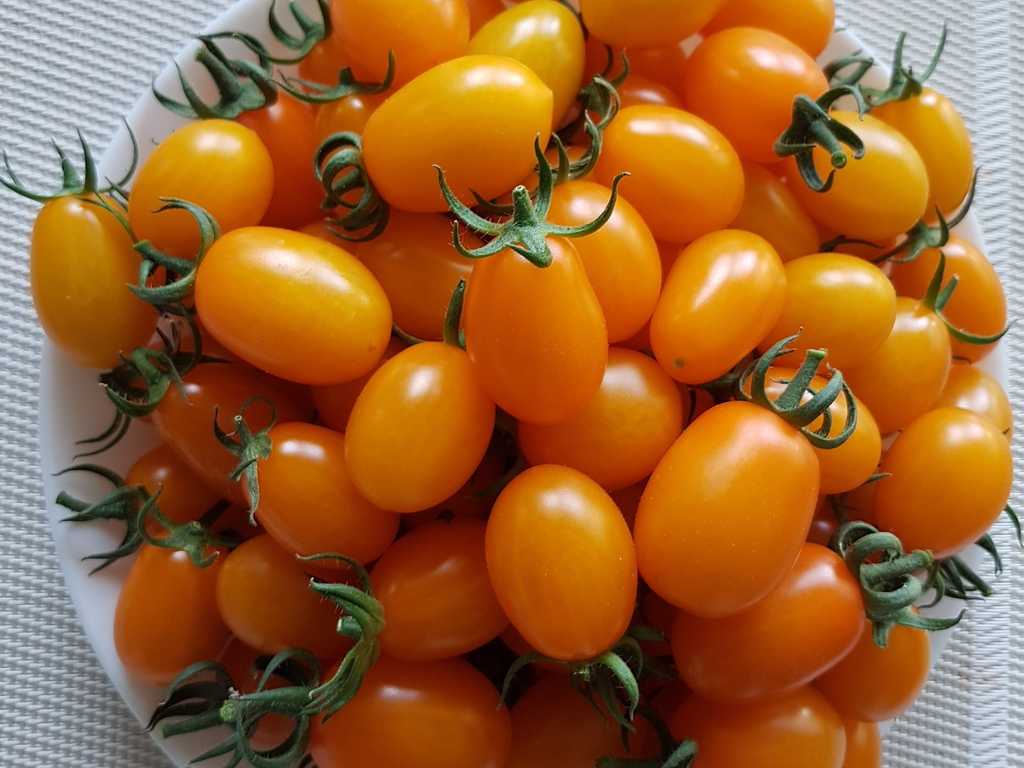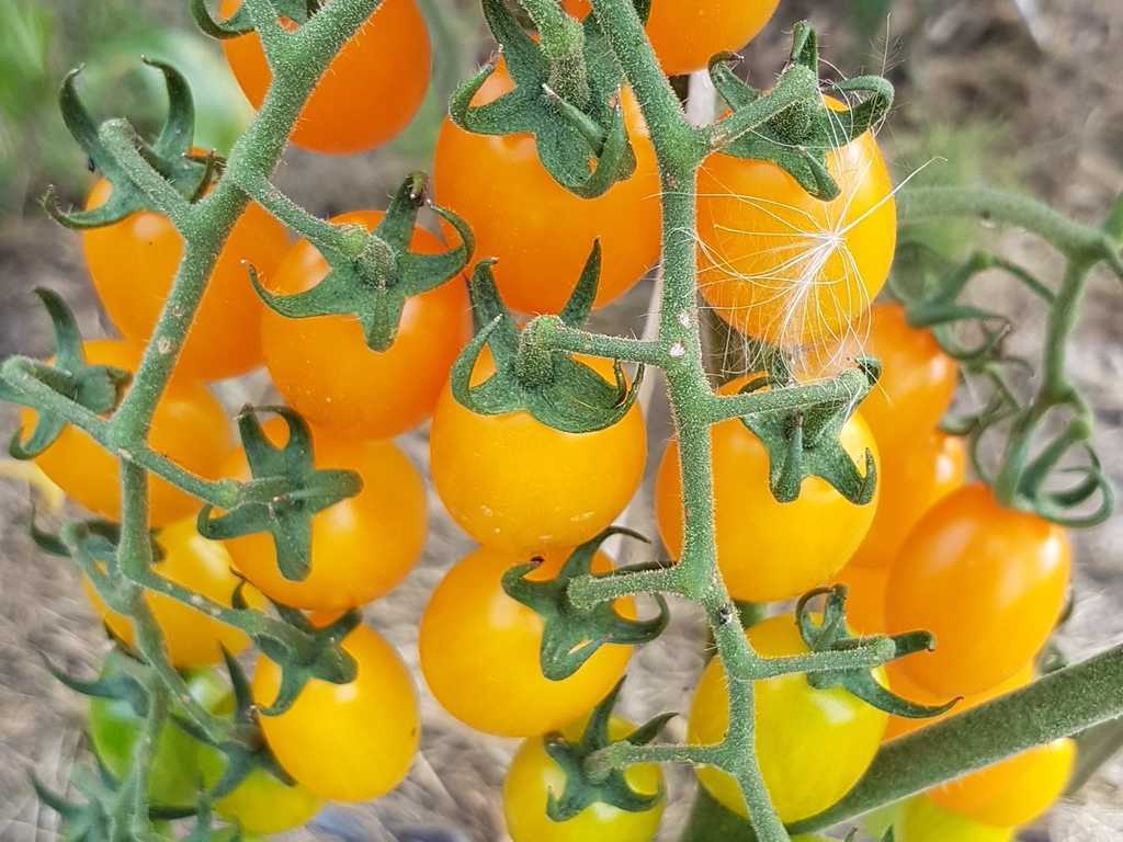 God, krispig, sparas länge, 150cm hög, väger 10g, buske full med dem små frukter.