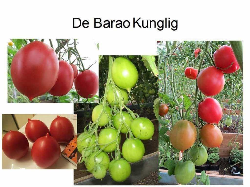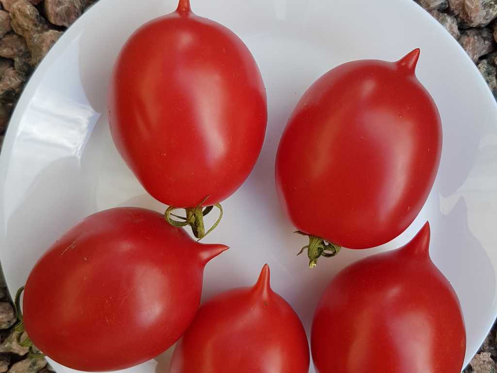 Fina plommonformade frukter med spets på ändan. Mycket tålig och produktiv sort med stora klasar. Sur-söt i smaken, köttet är fast, inlagda tomater sparar form. Bra att äta färskt, torka eller koka såser.