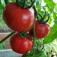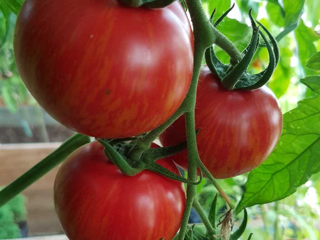 Små till medelstora röda frukter 60-120g, med gyllene ränder, vissa är hjärtan och andra är runda , väldigt söta och utsökt söta. Spricker inte.