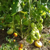 80-100cm hög. Matt frukt av en mycket sällsynt, ovanlig orange-persika färg, plattrund form, väger 200-300 gram. Tunn genomskinlig skin, saftigt, mjukt kött, mycket sött med en fruktig eftersmak och arom!