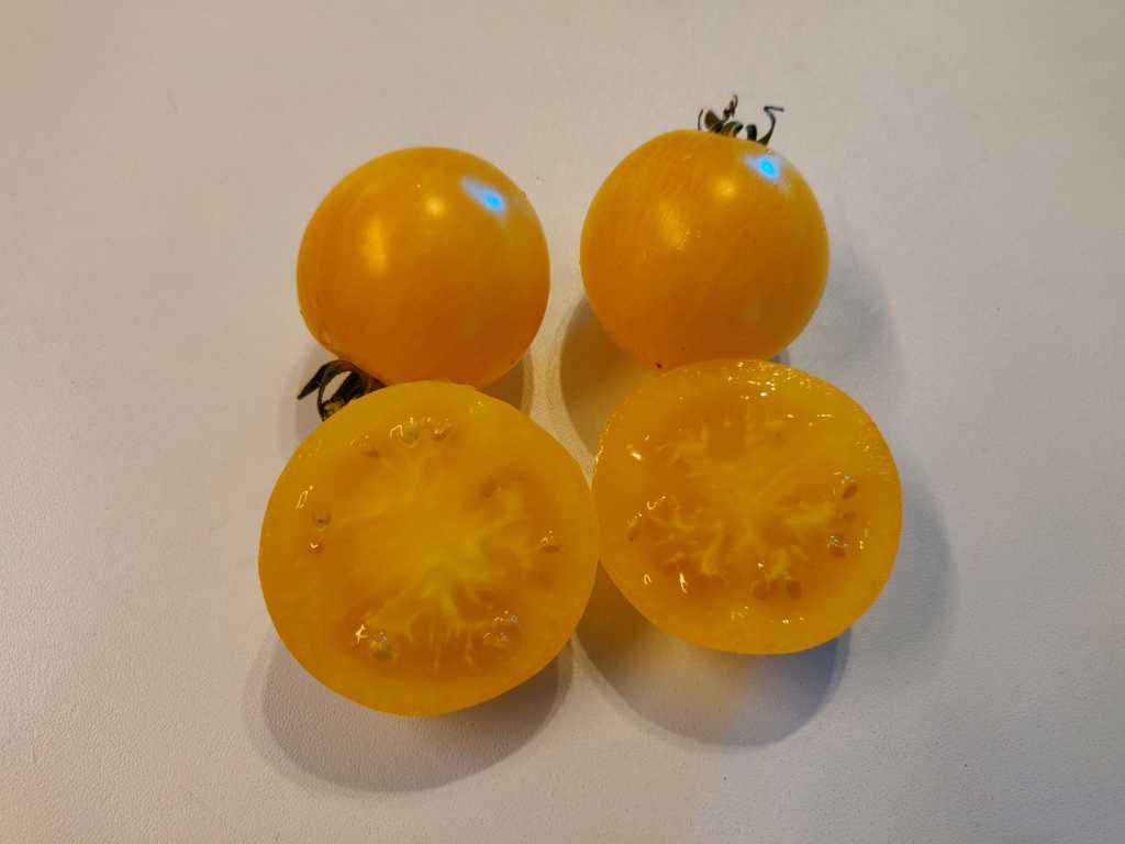 0,8-1m hög planta med variegata blad, producerar gula saftiga frukter, som väger 30-80g. Smaken är välbalanserad.