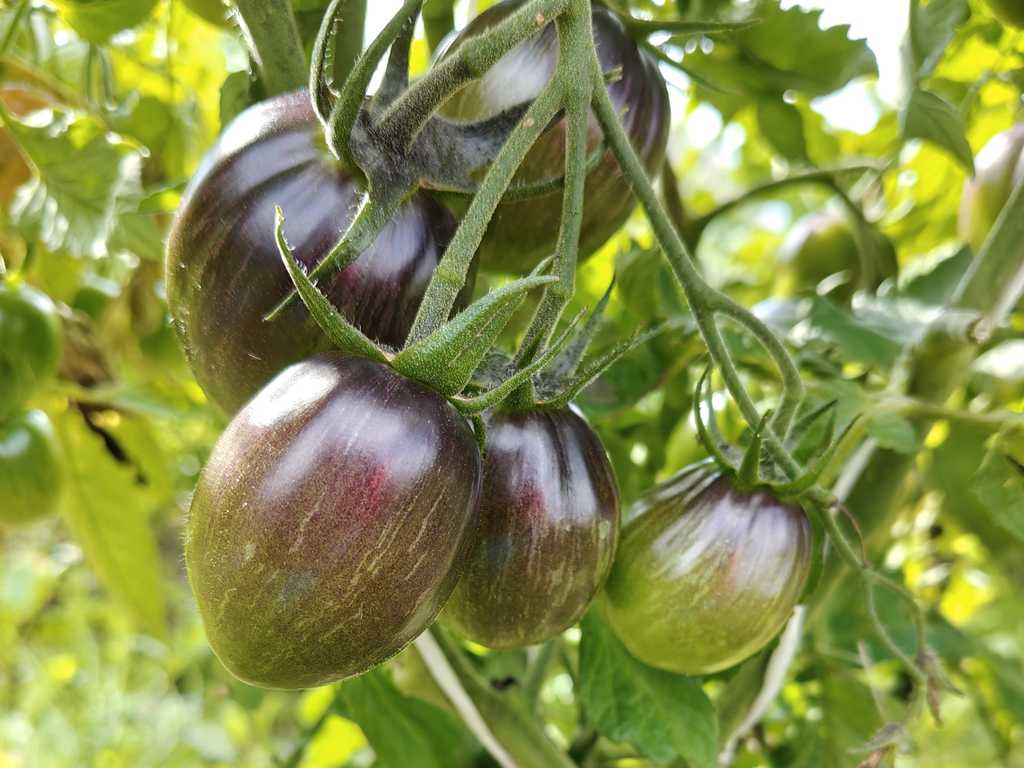 1,5m hög planta producerar medelstora mångfärgade frukter, som kan ha olika former, mest är avlånga. Smaken är rik, fruktig syrlig-söt.