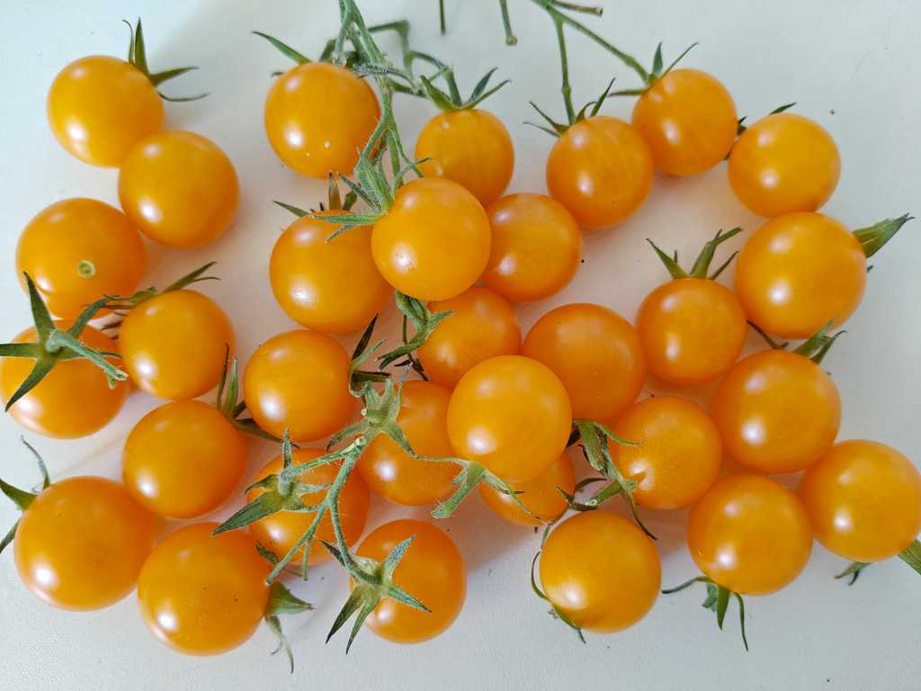 Tidig tomatsort som ger vackert gul/orangea och söta tomater. De små runda tomaterna väger ca 15-20g och växer i större klasar. Denna sort av körsbärstomater har även en bra motståndskraft mot sjukdomar.