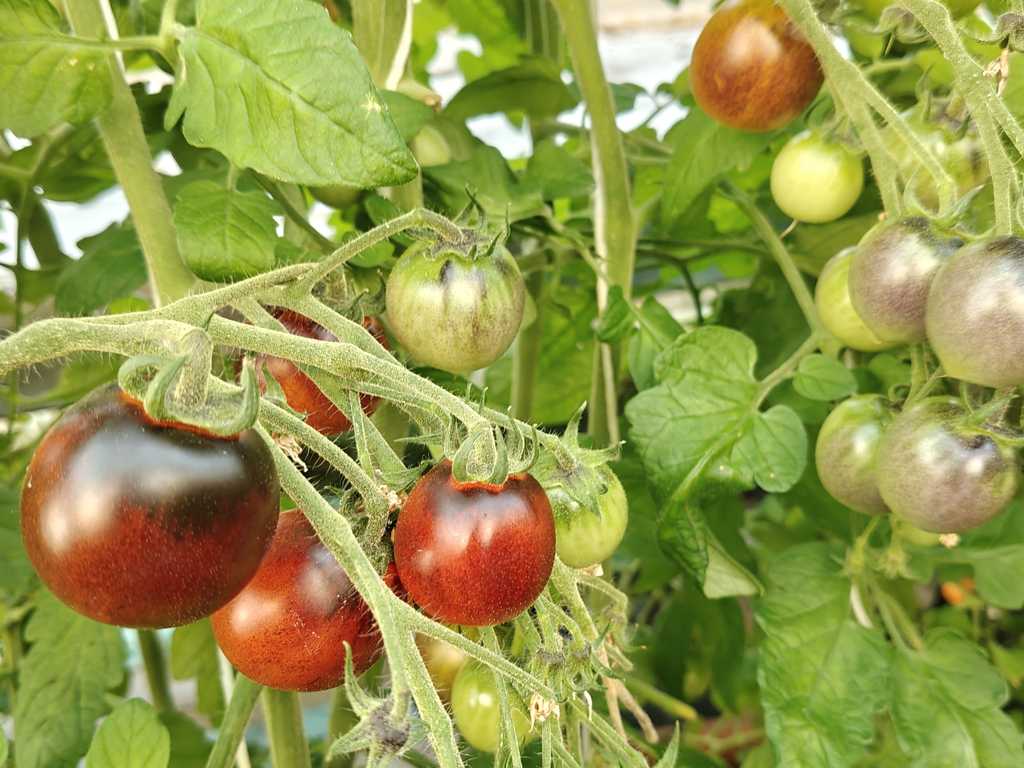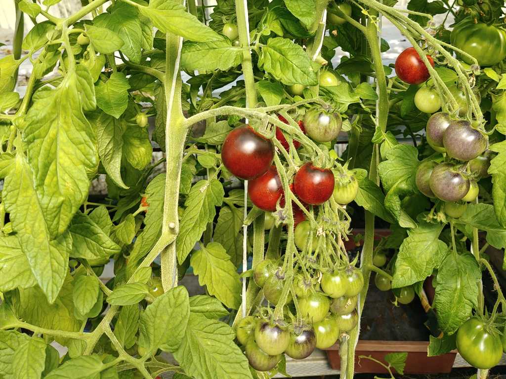 Rikbärande, hög planta producerar mörkröda frukter med blåa axlar. Tomater är saftiga med kraftig tomat smak. Lagras länge.