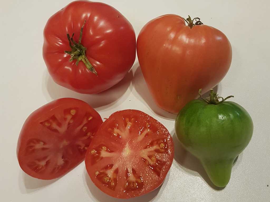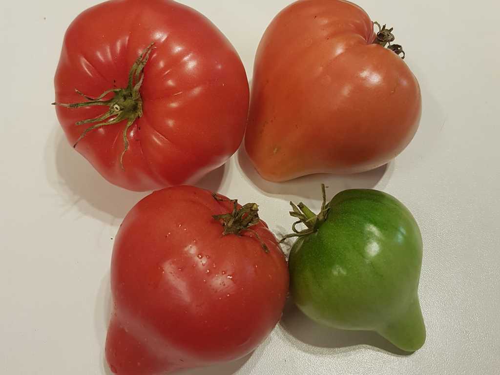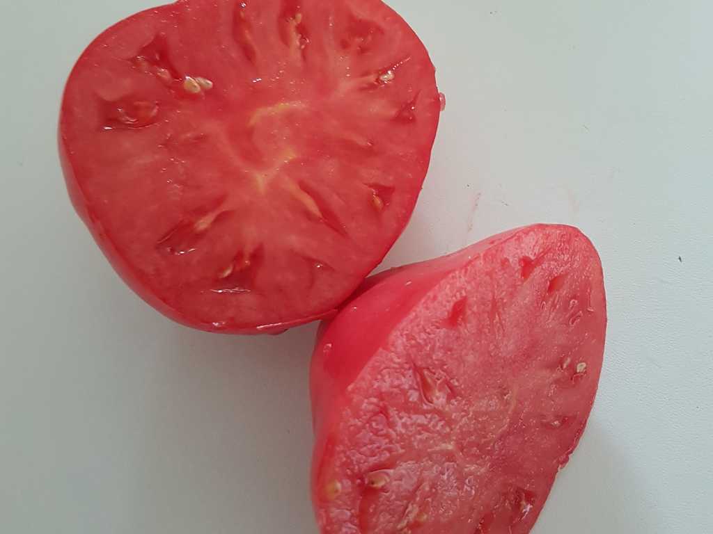 Tidig sort, 1,8m hög, rosa hjärtformade frukter med lång spets, köttiga med mycket mild och söt doftande smak. Arvssort med ursprung i Altai-bergen i Sibirien. Ryssland.