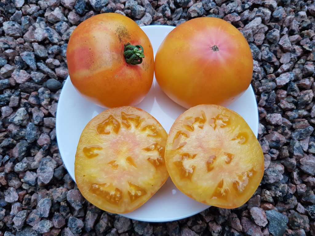 Biffiga frukter med vackert gul-orange skinn och kött fläckigt och rött. Kraftiga frukter är super söta med lätt syrligsmak, bra till sallader och smörgåsar.