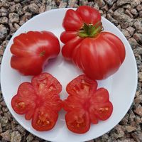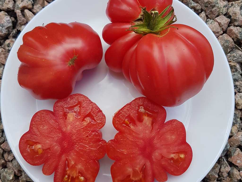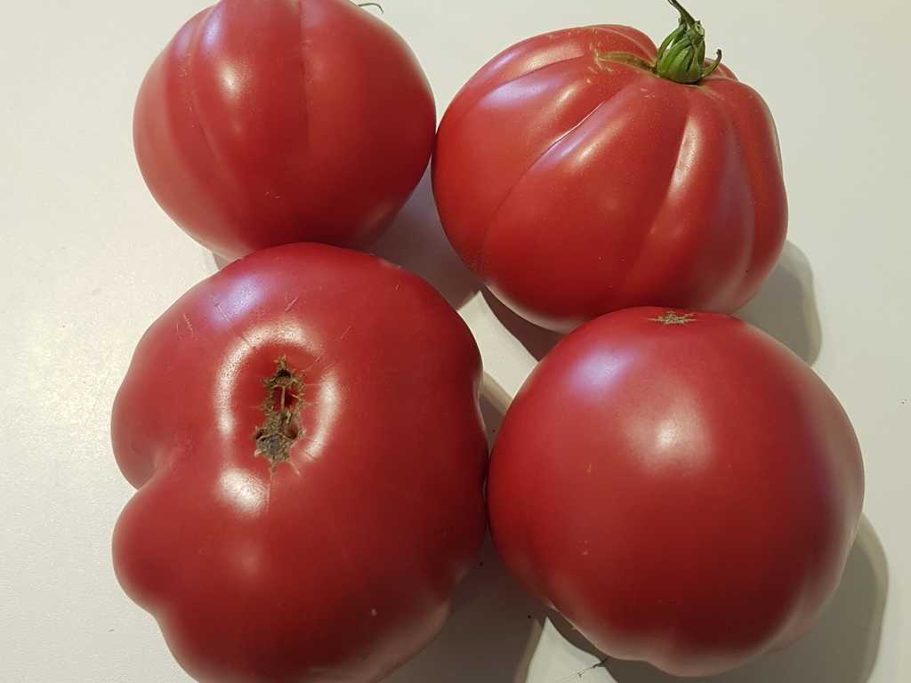 Frukt med formen av stora påsar, väger 200-400 g, saftig och söt, med en rik tomatsmak. Sorten rekommenderas på grund av fruktens utmärkta smak och hög resistens mot sjukdomar. Perfekt för smörgåsar, sallader, sommarfärska såser, soppor och konserver.