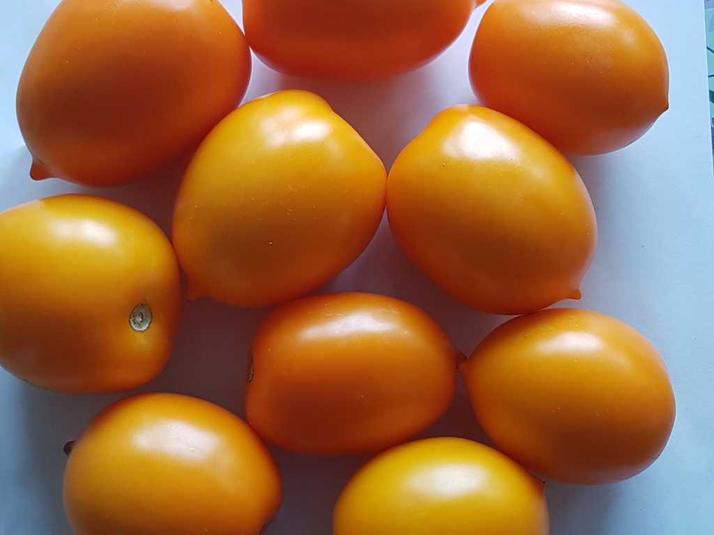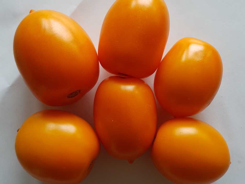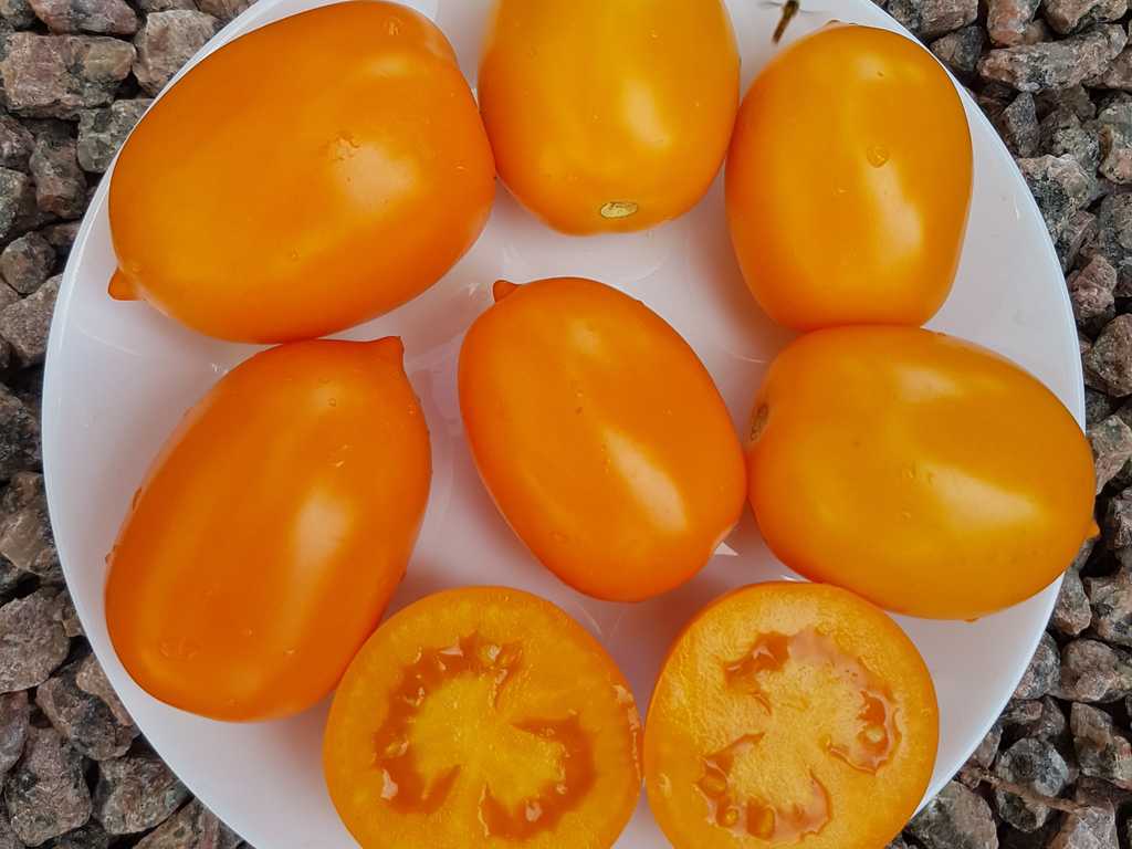 Tidig sort, 70 cm buske med fina orangea plommonformade frukter som väger 100g med bra smak. Tomater är hårda, lagras länge, passar bra att lägga in hela, torka och frysa. Den sort har stor lycopene halt, mycket vitamin C, betakaroten och kalium.