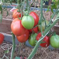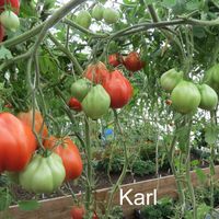 Mycket produktiv sort, även i varmt växthus tappar den INTE blommor. Resistent mot många tomatsjukdomar, god bindningsförmåga under svåra förhållanden. Över 2,5 m hög. Ribbade päronformade röda frukter som väger 150-300g, har god söt smak, som speciellt bra känns på hösten.