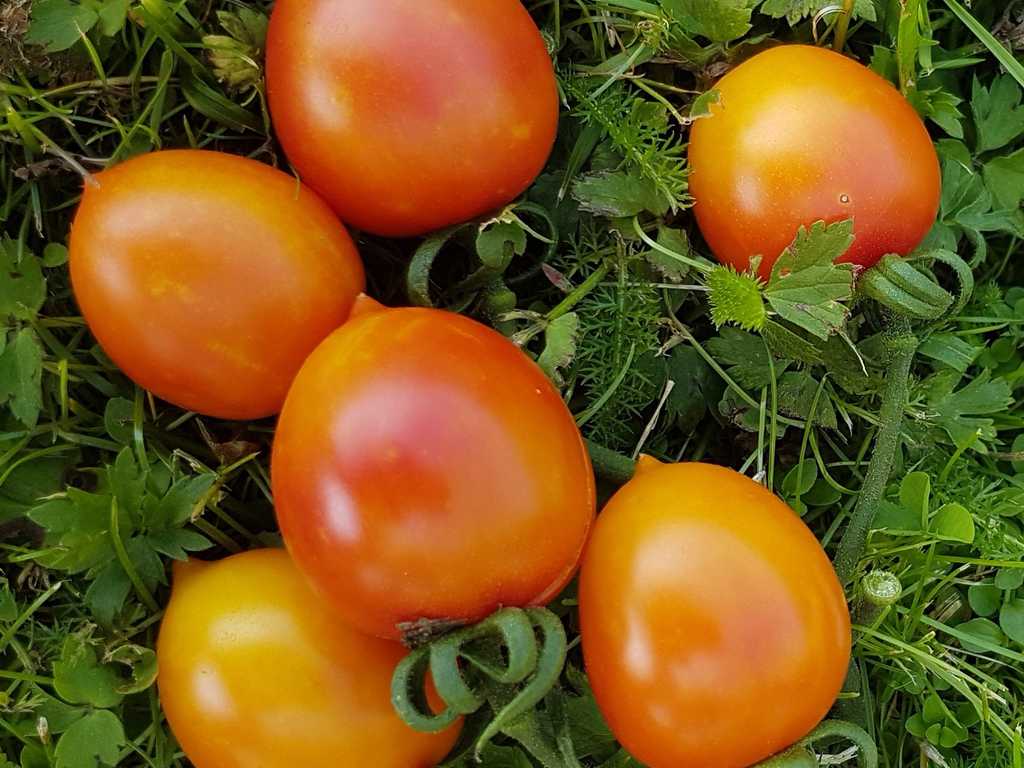 Frukt på ca 30 gram, av typ stor körsbär. Tvåfärgad gul och rosa skinn blir helt rosa vid full mognad. Tjockt, orange kött med rosa marmorering. Utmärkt söt och fruktig smak. Kraftig växt med stor utveckling, potatisblad, obestämd tillväxt.