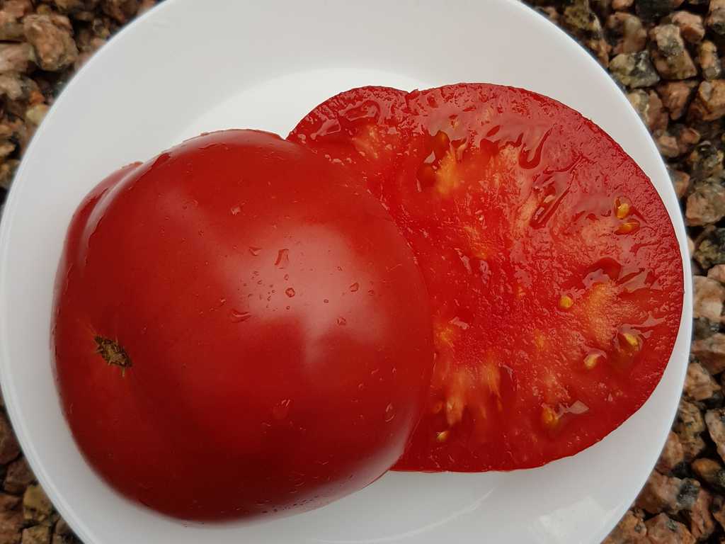 En kraftig och tålig sort, 1,8m hög, producerar bra överallt: i växthus och på friland. Frukter är stora platt-runda, 250-350g, köttet är tät med god tomatsmak, tål bra transportering.