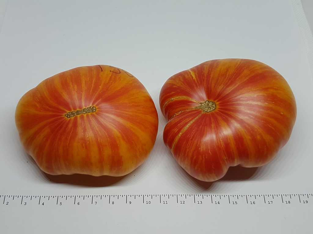 Snygg randig tomat med fantastisk smak, en riktig njutning för ögonen. Men det är deras produktion som verkligen är godbiten, producerar hela vägen fram till frost. Smakprofilen är söt och fruktig med lite syrlighet! Riktig smörgåsgodis!