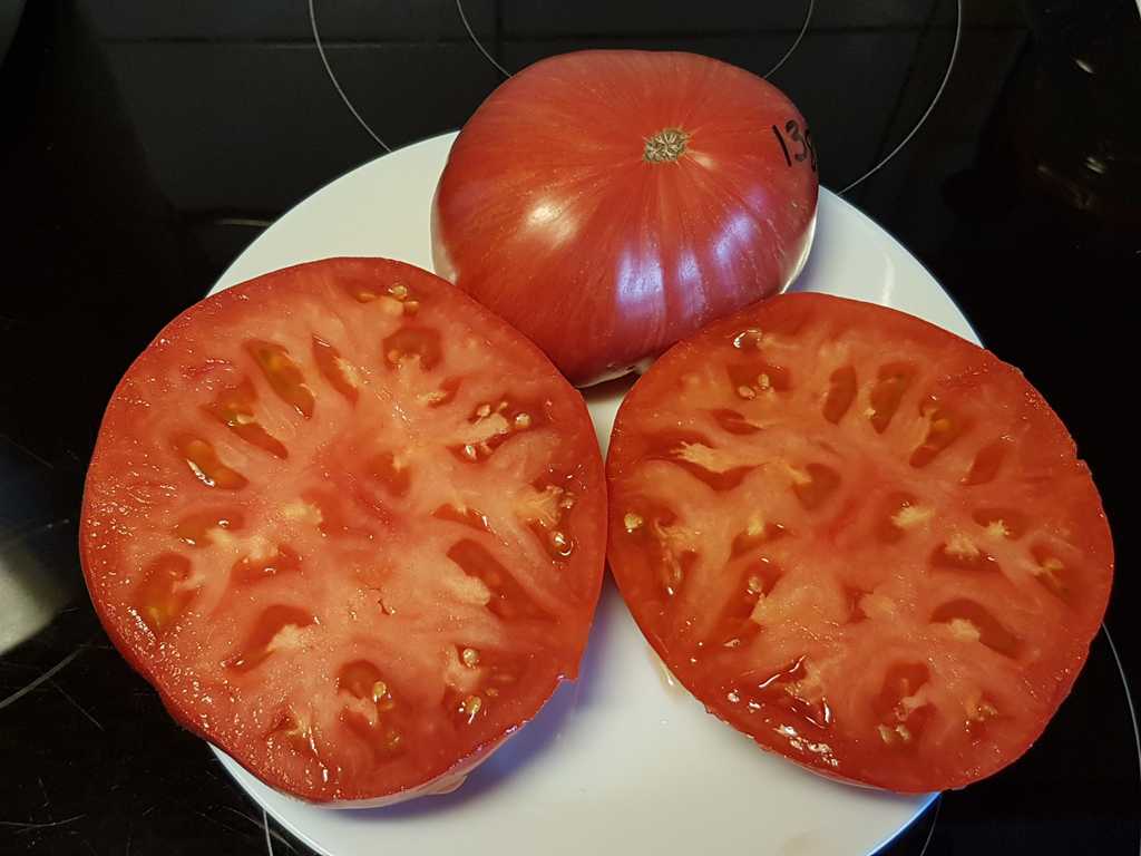1,8-2m hög planta. Mycket produktiv sort. Stora randiga frukter väger 200-400g. är söta med en pikant syrlighet som förbättrar smaken, god tomatarom med lätta fruktiga toner.