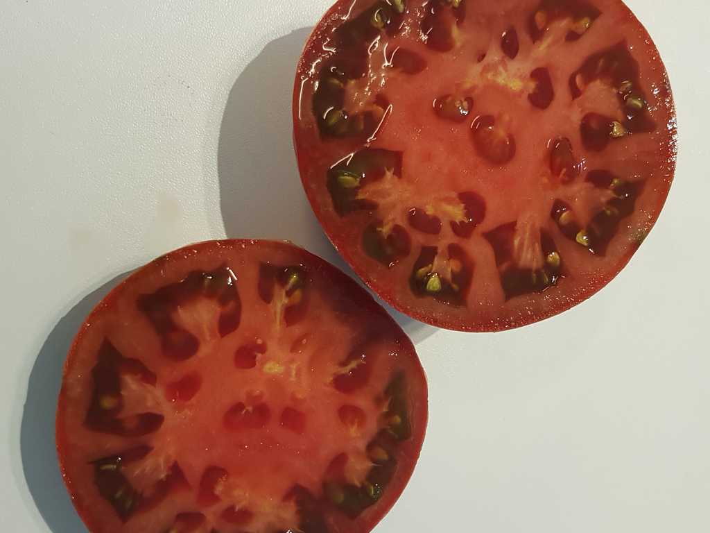 1,5-2m hög kraftig planta, mörkröda stora (200-300g) platt-runda frukter. Smaken av tomater är harmonisk, med en lätt syrlighet. Sorten har riklig fruktsättning.