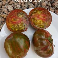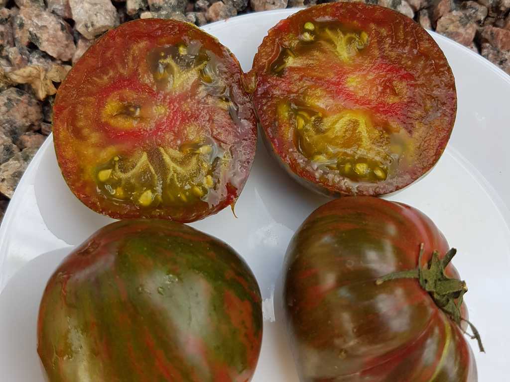 Originalfärg, gröna nyanser randiga med röda streck. Köttet är grönaktigt med röd i mitten, köttigt och saftigt. Rik och komplex arom. Supper avkastning.