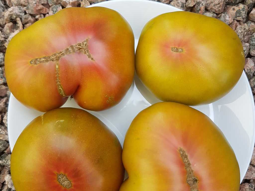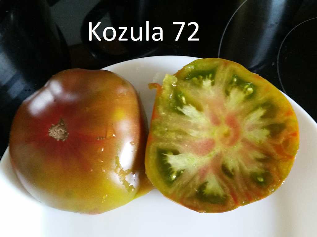 1,3-1,5m hög, fina grön-röd-gula frukter väger 200-300 g. De har söt och mycket harmonisk smak. Super god! Högt producerande sort!