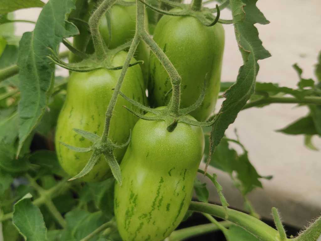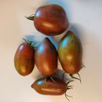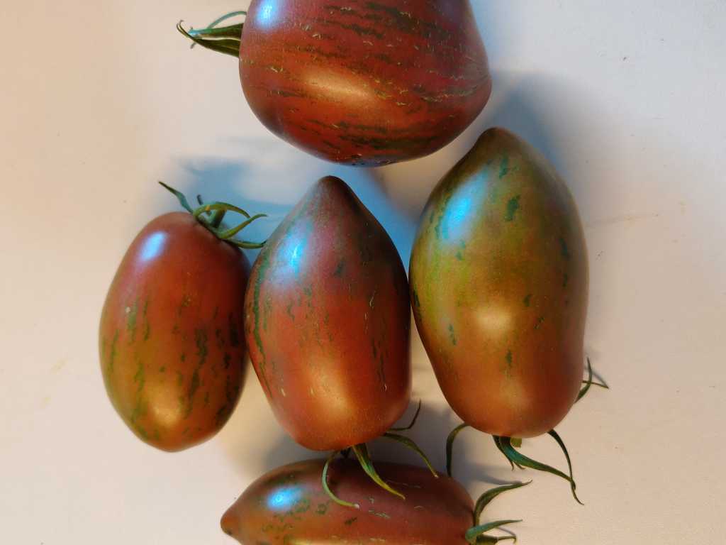 Sorten ger långsträckta/cylindriskt randiga tomater med en liten spets i slutet. 170cm hög. Tomaterna väger mellan 70-130 g och ger en mild och balanserad smak.