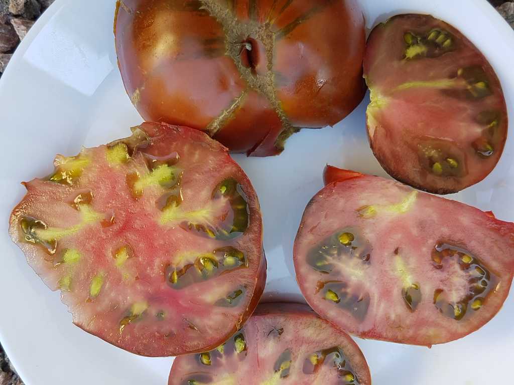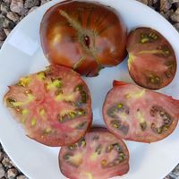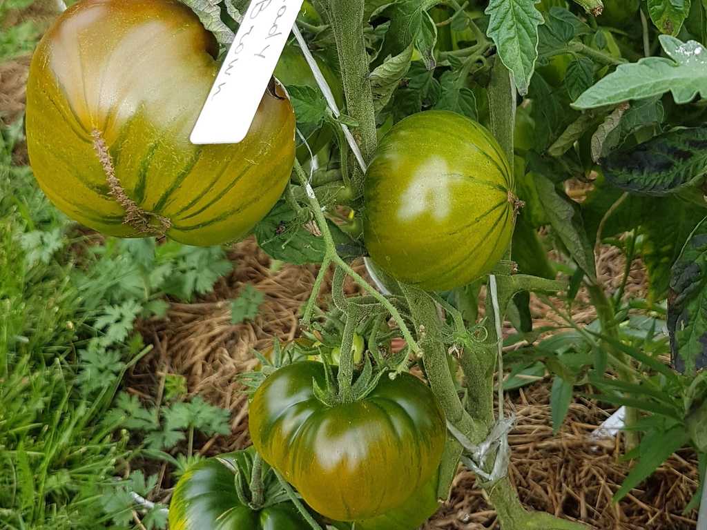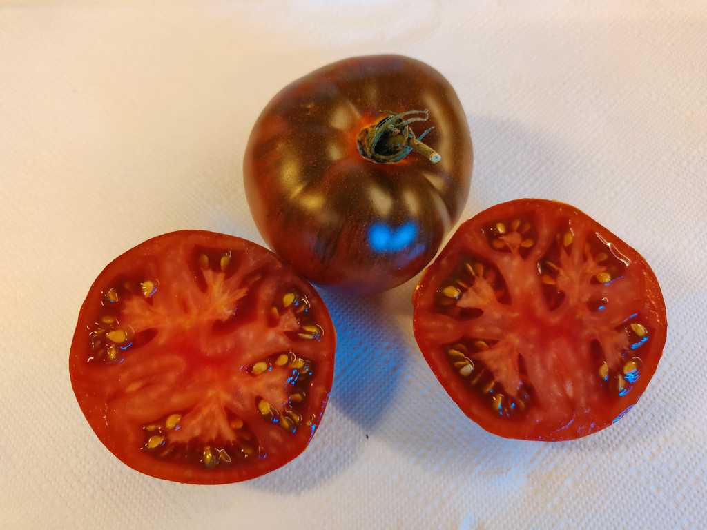 Sorten är inte krävande i vård och ganska motståndskraftig mot extrema väderförhållanden. Sorten producerar bra även i extrem värme. Stora frukter har mörkröd/rosa färg, ofta med gröna render och axlar. Köttet är sött, saftigt, rikt, med en fruktig eftersmak.