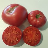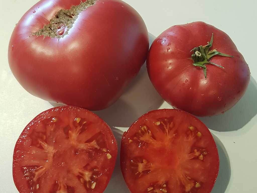 Sorten har många gånger fått första priser på olika utställningar. Frukten är stor, plattrund, något ribbad. Otroligt vacker, rödrosa i färg på snittet, slät med en delikat glans på huden, väger från 200 till 600 g., med en tunn hud, överraskande söt i smaken, mycket saftig. Sorten är utmärkt i sallader, mycket välsmakande såser och juice. De är väl lagrade och lämpliga för transport. Sorten är produktiv.