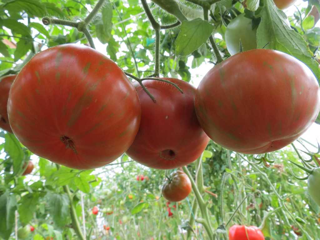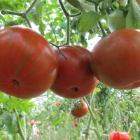 En högavkastande, sällsynt exotisk sort. En buske 1,8 - 2 meter hög. Frukten är plattrund, i mognadsstadiet av en mycket ovanlig färg - gröna (med metallglans) ränder och slag på en rödbrun bakgrund. Vikt 250-350 g, saftig, söt, mycket välsmakande. Dessa tomater är bra för färsk konsumtion och är också lämpliga för att göra juice, såser