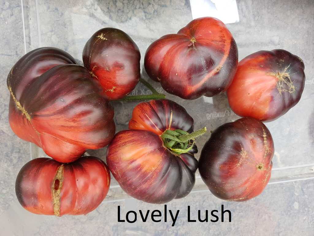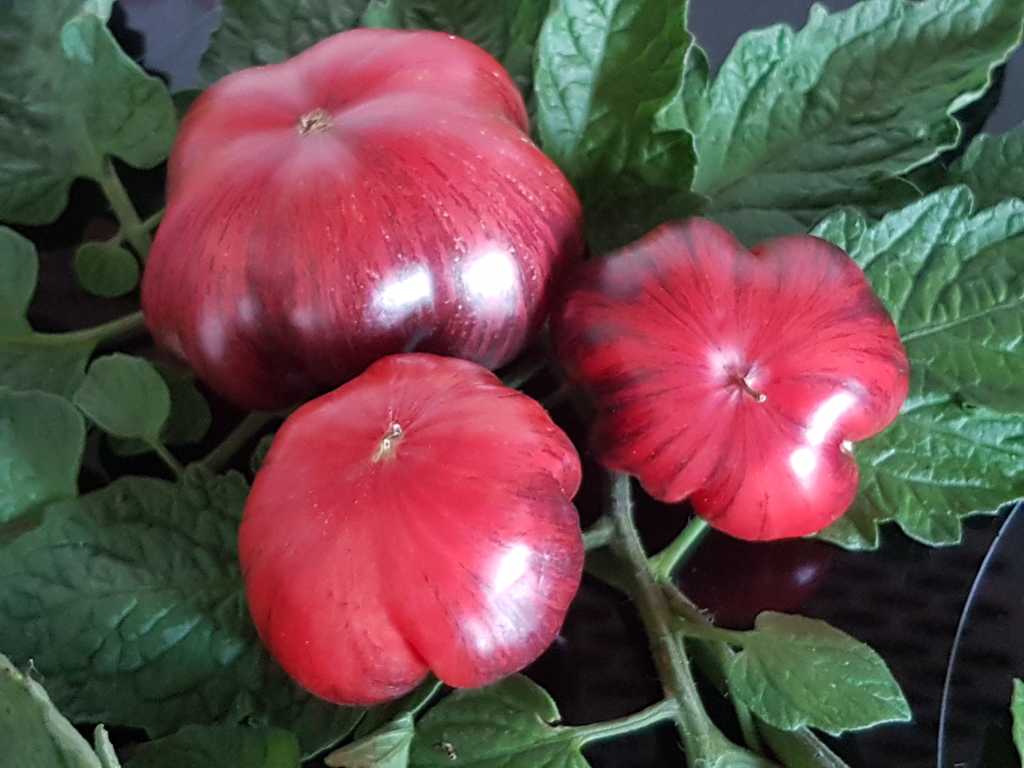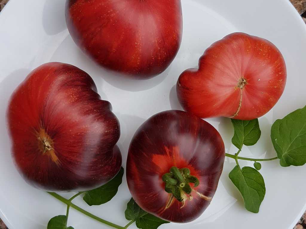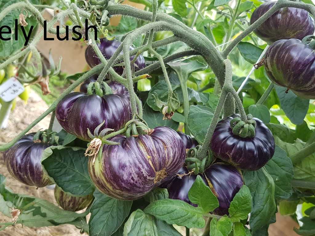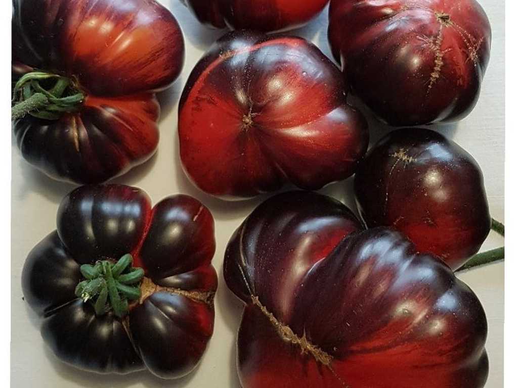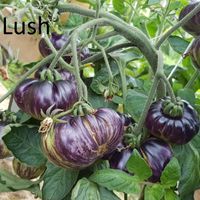 180cm hög, 100-200g frukterna har en varierand form och storlek, saftig, fast, söt med mycket god tomatsmak. Mycket blå färg får frukter, när de växer på solig plats.