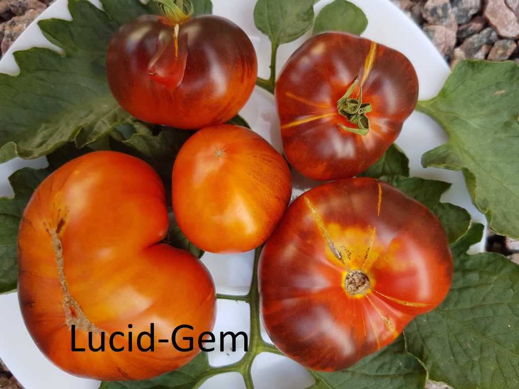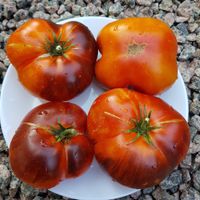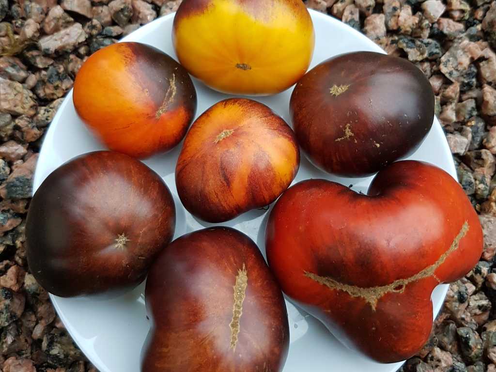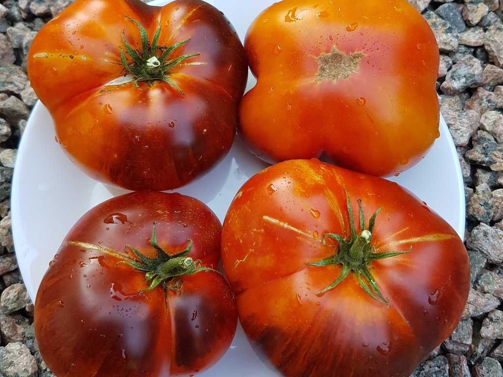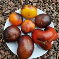 Dess färg är stänkt med spår av anthocyanin, som kontrasterar bra med dess ljusa hud som övergår från gul till orange när den mognar. Ännu mer får frukter sol desto mörkare blir axlar. Mycket köttigt orangegult fruktkött med röd marmorering i mitten. Söt och fruktig smak som påminner om de bästa klassiska tvåfärgade varianterna.
