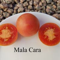 Lagringbara. Rejält högväxande sort som kan bli hela 2 m hög. Ger smakrika gulorangerosa, matta tomater med en vackert frostig skimrande yta. Tomaterna är tjockväggiga, plantan har potatisblad. En ovanligt vacker vintertomat med hållbarhet i ca 3-4 månader.