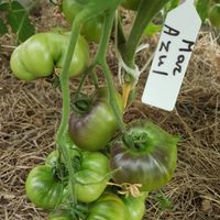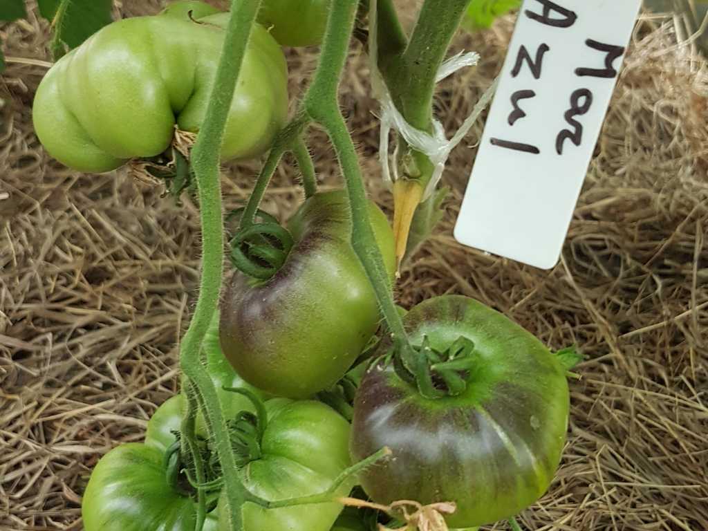 Vackra mörkrosa frukter med lila axlar. Magisk bifftomat! Helt underbart vacker och precis lika god. 2m hög, väger 150-250g.