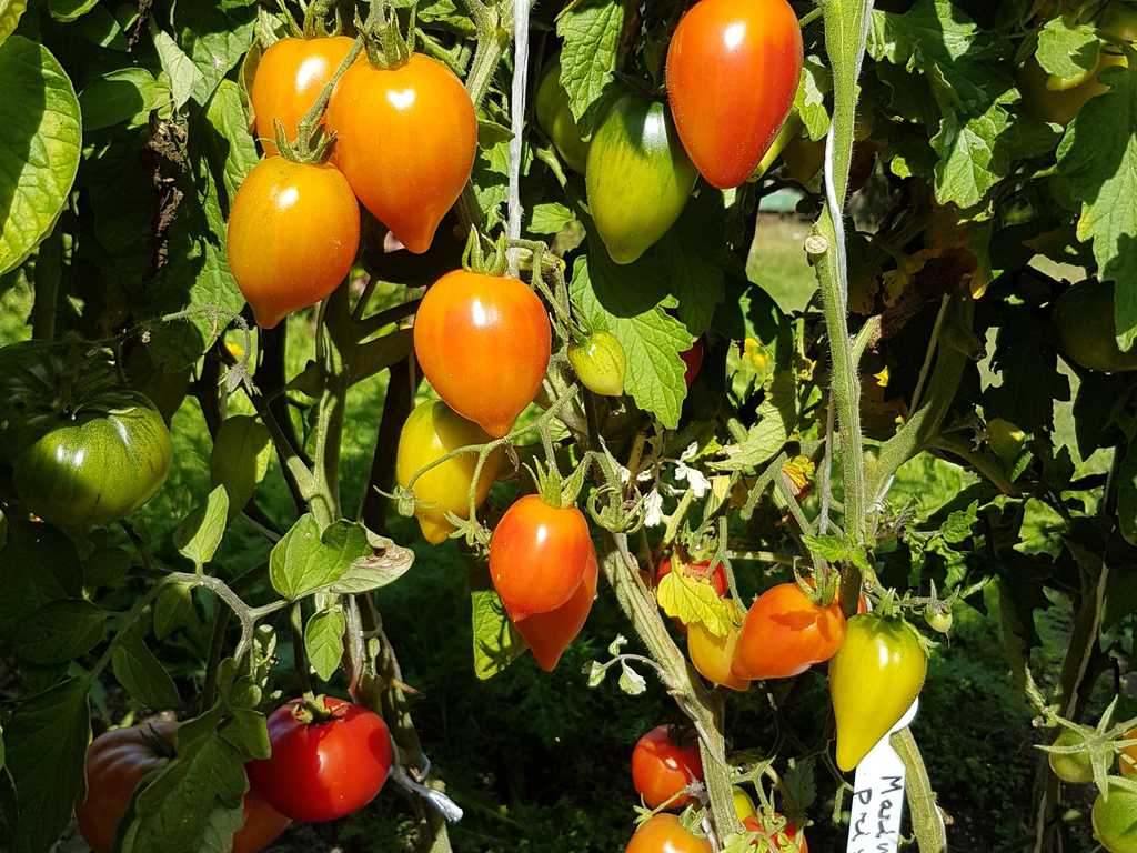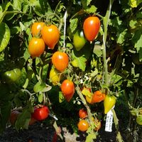 Avlånga plommonformade frukter med en spets. Fruktvikt 50-100g. Gul-orange färg med en röd rouge vid full mognad. Gott och saftigt gult kött har en röd mönster i mitten. Har ärvt den utmärkta smaken och färgen av sin förfader "Orange Russian 117". Ung planta har variegata blad, sen blir de bara gröna.
