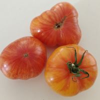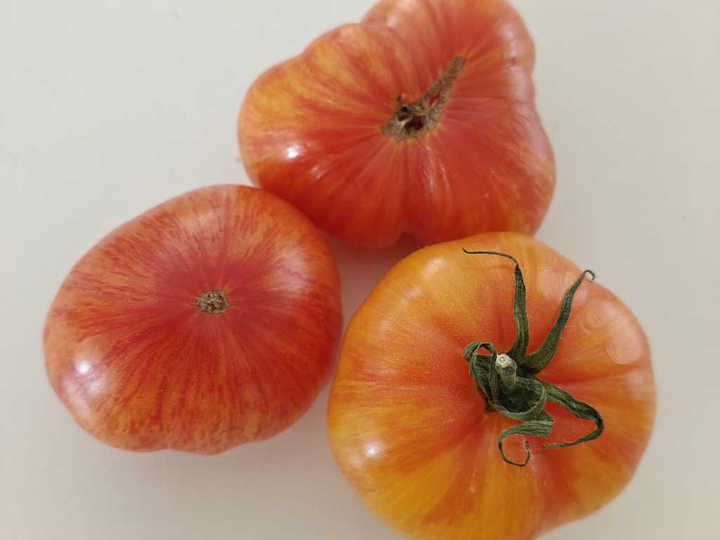 Hög, med potatisliknande blad. Frukterna väger 200-400 g, vanligtvis runda, något tillplattade, med lätta ribbor upptill och rundade axlar. Frukten är gul med rosa ränder. Det täta och saftiga gul/rosa fruktköttet har en utmärkt smak.